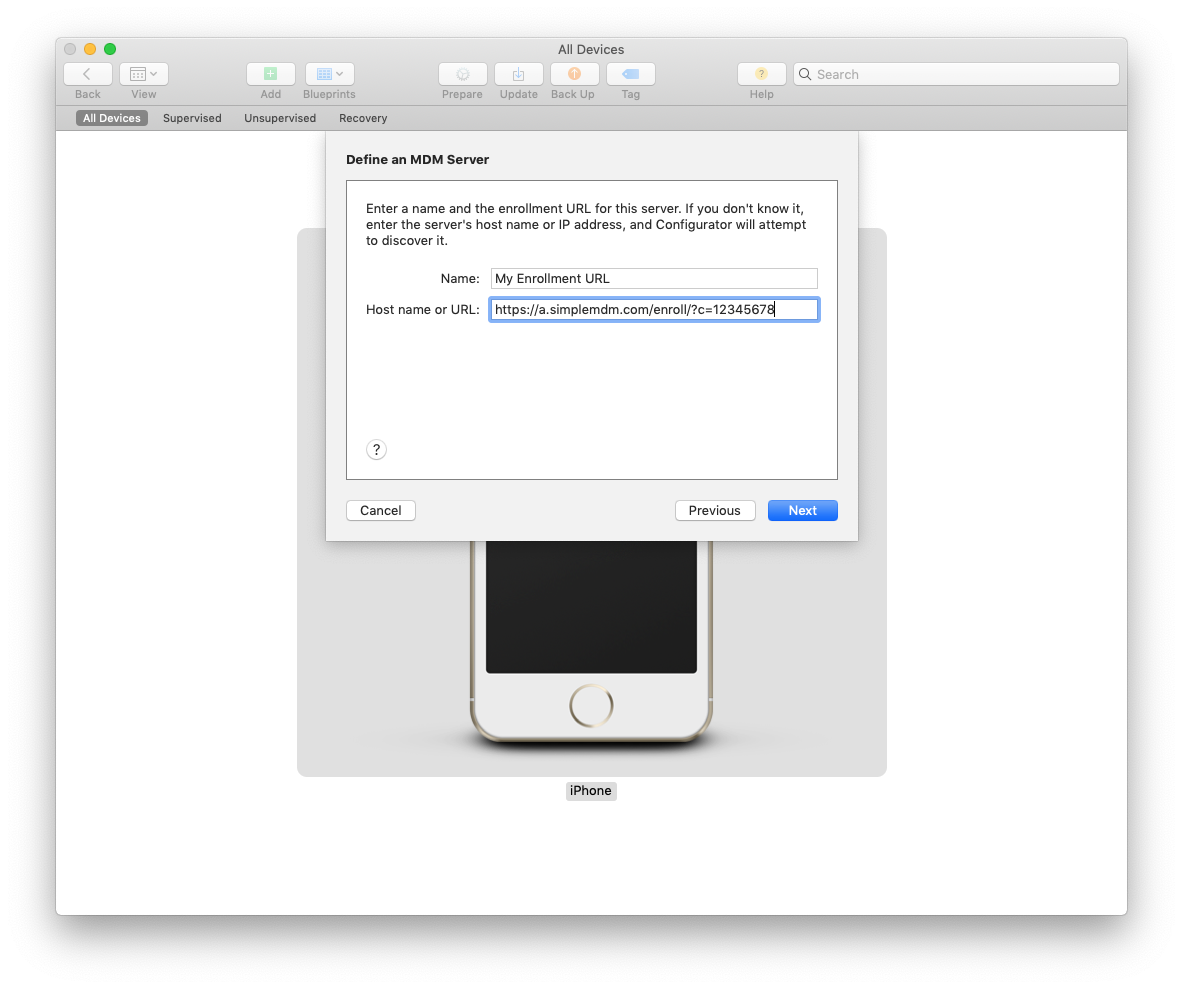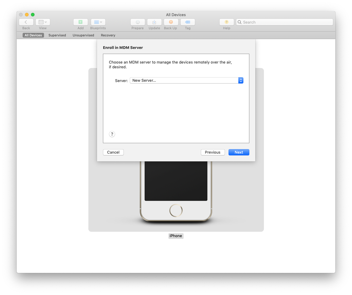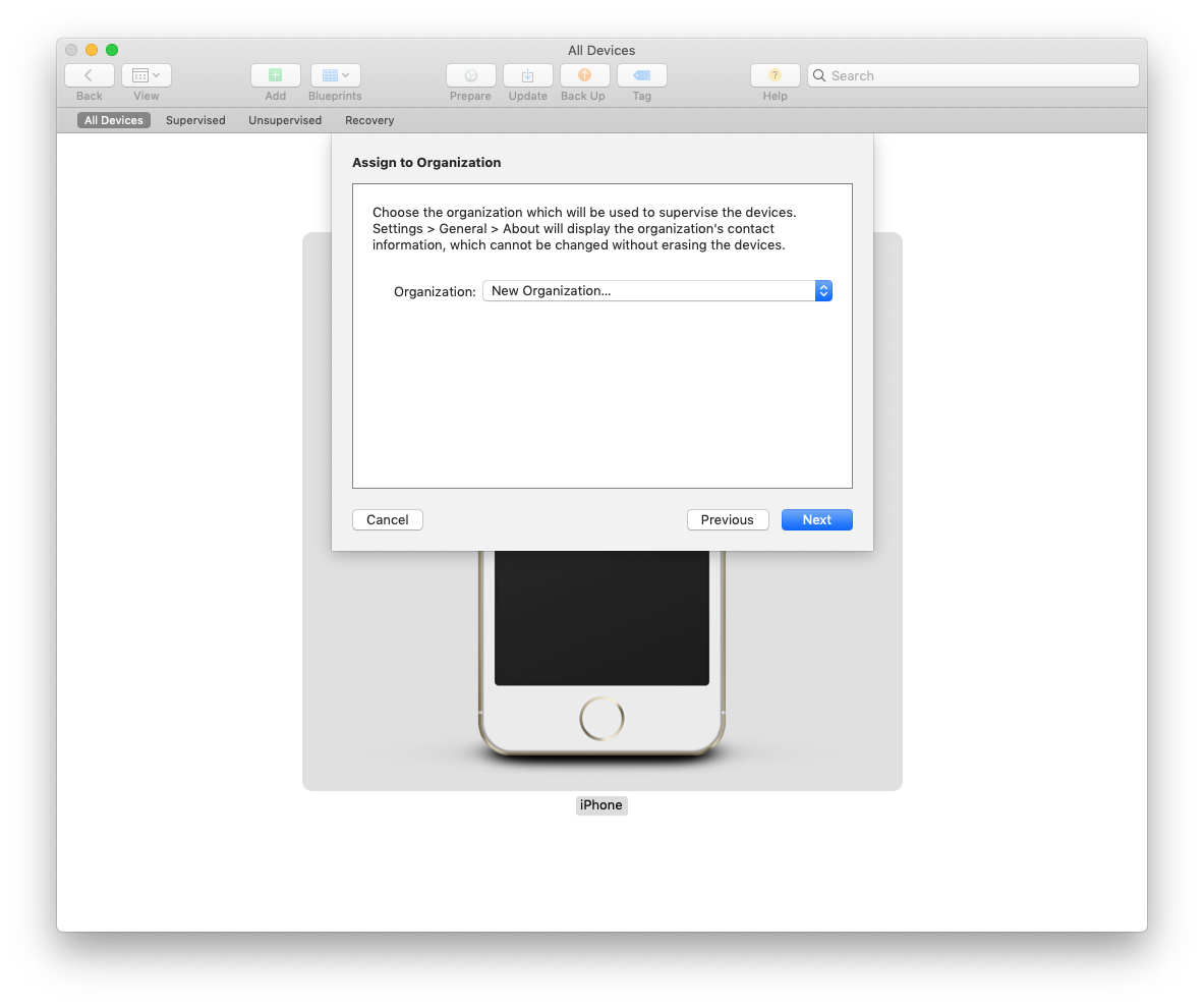 1. Plug your iOS device into a Mac running Apple Configurator.