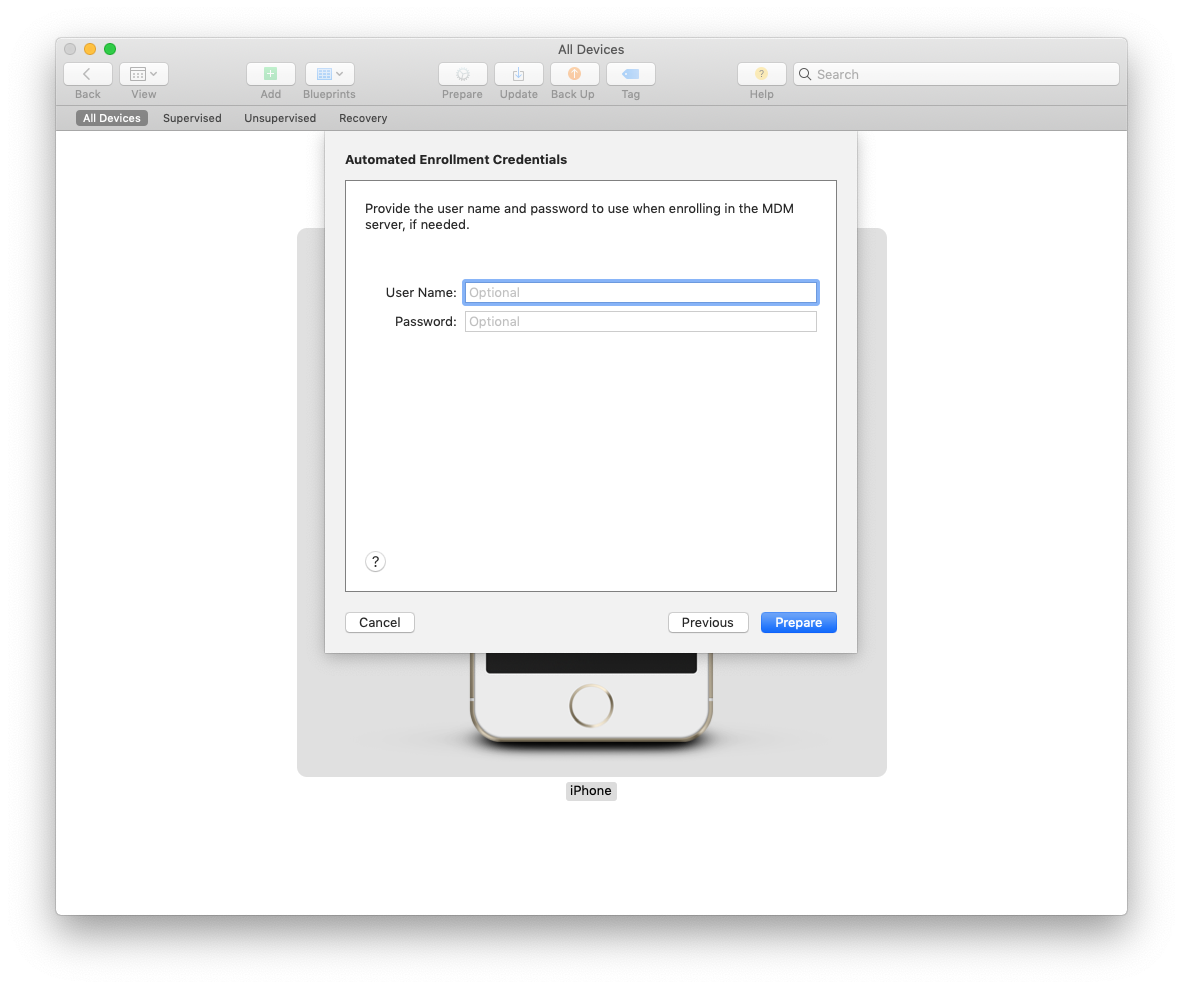 Note: Devices added to Apple Business Manager manually via Apple Configurator and enrolled in MDM will still allow the MDM profile to be manually removed for 30 days after enrollment. As long as the device is not unenrolled at any point during the first 30 days, the profile will become unremovable and users will not be able to manually remove MDM from devices.